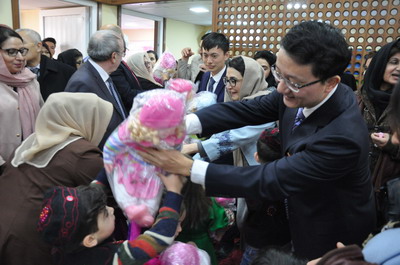 刘大使说,中国大使馆的同事们也有孩子,因为各种原因不能带孩子来喀布尔团聚,只能打打电话,所以我们每天看到毗邻的阿富汗外交部幼儿园的孩子们在父母陪伴下高高兴兴地就近入园,感到既亲切又有些心酸,为了“大家”的安全与幸福,我们不得不牺牲一些“小家”的亲情。也因为如此,我们对阿富汗外交部幼儿园的孩子有一种特殊的感情,可以讲是“象喜亦喜,象忧亦忧”。我们为幼儿园提供一些力所能及的贡献和捐助,希望用爱心让这里的孩子拥有更丰富的玩具、更完善的设施、更安全的环境。我们也想让孩子们知道,中国就在他们身边,中国人是他们最好的朋友。
