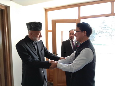 2018年1月24日上午,驻阿富汗大使刘劲松拜会阿富汗前总统卡尔扎伊。