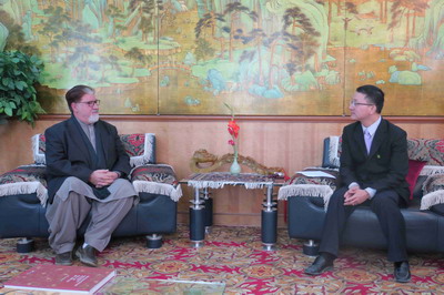 2018年2月6日,驻阿富汗大使刘劲松在使馆会见阿富汗总统媒体事务高级顾问、沙姆沙德传媒集团总裁法泽尔。