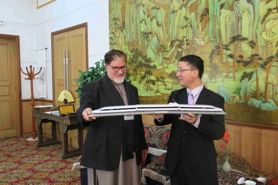 法泽尔还高兴地谈起在中国乘坐动车的愉快经历,与刘大使畅谈两国铁路合作的广阔前景,表示中国高铁的速度、稳当与舒适度恰恰也是媒体人的不懈追求。