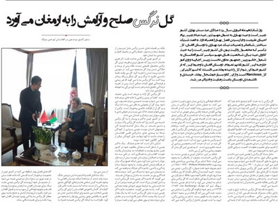 2018年2月12日,阿富汗达里语主流媒体《每日瞭望报》刊登了驻阿富汗大使刘劲松的署名文章《愿水仙花带给大家宁静与和平》,中文原文如下: