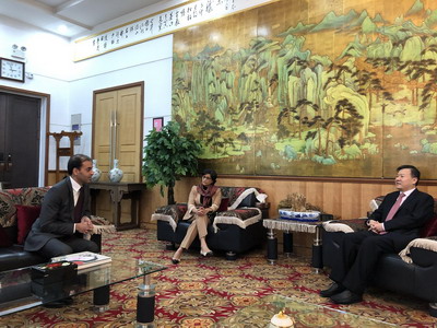 2020年2月16日,驻阿富汗大使王愚在使馆会见阿迦汗基金会(AKDN)驻阿大使茜拉吉和来自阿迦汗基金会总部的阿迦汗四世办公室高级成员努尔默罕默德。