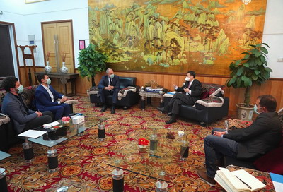 2020年3月24日,驻阿富汗大使王愚会见世界卫生组织驻阿代表皮普孔、欧盟公民保护和人道主义援助总局代表潘多尔菲和无国界医生组织代表瑞克曼,就加强新冠肺炎疫情防控合作交换了意见。世卫组织驻阿协调员赖锦辉等在座。