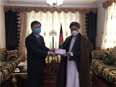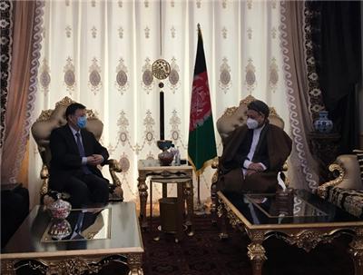 2020年4月5日,驻阿富汗大使王愚会见阿资深政治家、人民伊斯兰统一党领导人穆哈齐克,支持阿各派团结一致,抗击新冠疫情。