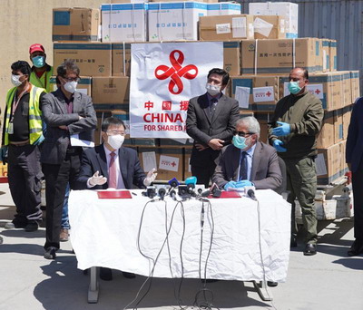 2020年4月23日,中国政府援助阿富汗第二批抗疫物资交接仪式在喀布尔国际机场举行。驻阿富汗大使王愚和阿公共卫生部长费罗兹共同主持仪式。托罗新闻、帕吉沃克通讯社、阿丽亚娜新闻等众多阿主流媒体及新华社、央视等国内媒体在现场对交接仪式进行了全程报道。