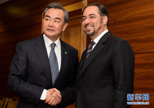王毅表示,今年是中阿建交60周年,也是双方商定的“中阿友好合作年”,两国关系发展面临新契机。中方愿加大对阿和平重建的支持,推进经贸、投资、安全、人文等领域合作。中方赞赏阿方支持习近平主席提出的“一带一路”倡议,欢迎阿方积极参加有关合作。中方赞赏阿方支持配合中方打击“东伊运”暴恐势力,将继续支持阿加强反恐能力建设,同阿方开展双多边安全合作。