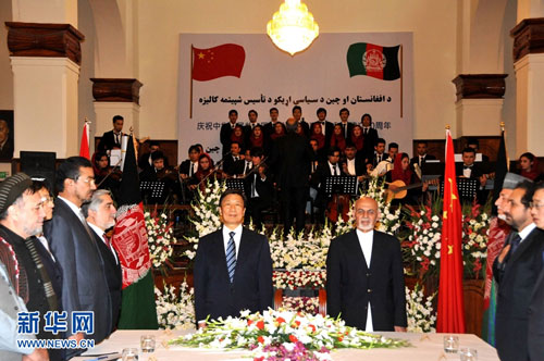 当地时间11月3日,国家副主席李源潮与阿富汗总统加尼在喀布尔共同出席纪念中国与阿富汗建交60周年招待会。