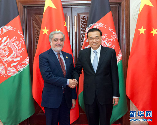 李克强指出,发展经济是阿富汗实现安全与稳定的重要途径。中方鼓励和支持中国企业按照互利共赢的原则对阿投资,提升两国经贸水平,推动重点项目建设;在交通、水资源、可再生能源、人力资源培训等领域加强合作;加强反恐和防务安全合作,营造良好的安全环境;支持阿方利用地缘优势,积极参与区域互联互通合作。