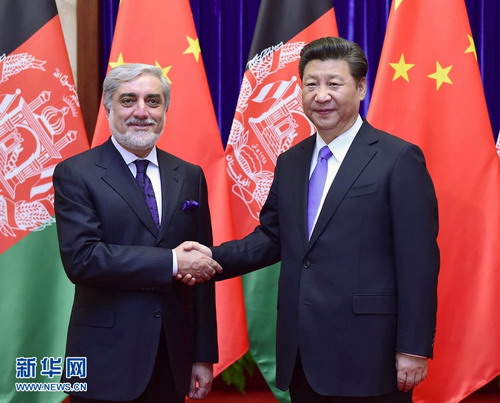 习近平指出,中国和阿富汗是传统友好邻邦。建交60多年来,中阿奉行和平共处五项原则,相互尊重、相互理解、相互信任、相互支持,睦邻友好关系不断增强。我们赞赏阿富汗民族团结政府致力于发展经济、推进和解、维护安全,并取得积极进展。作为阿富汗可以信赖的邻居和朋友,中方重视发展同阿富汗的友好合作关系。我们愿同阿方一道努力,推动中阿战略合作伙伴关系向前发展。