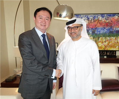 2015年3月31日,驻阿联酋大使常华会见阿外交事务国务部长卡尔卡什。