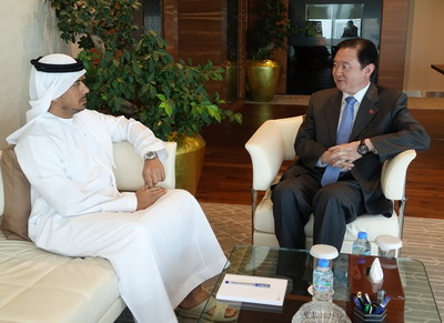 2015年4月12日,驻阿联酋大使常华会见阿布扎比执行委员会委员、阿布扎比旅游文化局主席苏尔坦·本·塔哈农亲王。