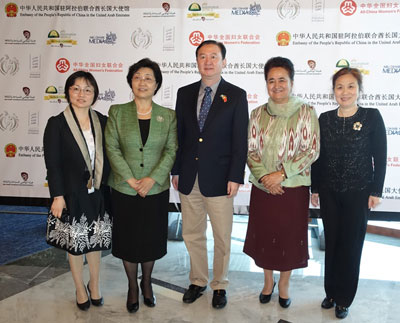 2015年4月28日,驻阿联酋大使常华会见来阿出席首届中国-阿拉伯妇女论坛的全国妇联副主席、书记处书记崔郁、新疆政协副主席兼全国妇联副主席热孜万·艾拜等中国妇女代表团主要成员。