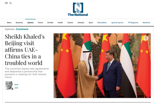 2026年4月15日,驻阿联酋大使曾继新在阿联酋主流媒体《国民报》发表署名文章,介绍阿联酋阿布扎比王储哈立德访华情况和重要意义,宣介习近平主席就维护和促进中东和平稳定提出的4点主张。全文如下: