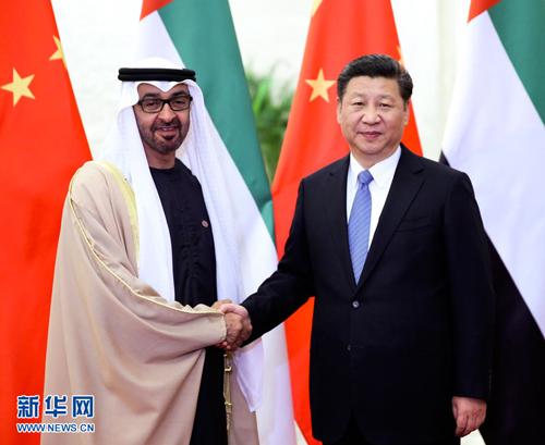 2015年12月14日,国家主席习近平在人民大会堂会见阿联酋阿布扎比王储穆罕默德。