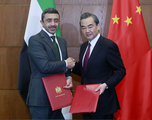 2017年5月2日,外交部长王毅在北京同阿联酋外交与国际合作部长阿卜杜拉共同主持中阿政府间合作委员会首次会议。