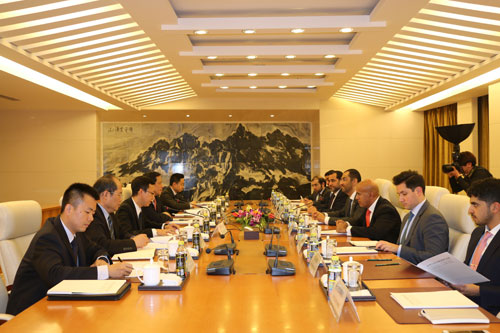 2017年5月12日,外交部副部长张业遂应约会见来华出席“一带一路”国际合作高峰论坛的阿联酋国务部长苏尔坦,双方就双边关系以及两国务实合作等交换了意见。