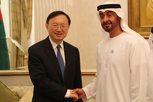 2018年4月30日,习近平主席特别代表、中共中央政治局委员、中央外事工作委员会办公室主任杨洁篪在阿布扎比会见阿联酋阿布扎比王储穆罕默德。