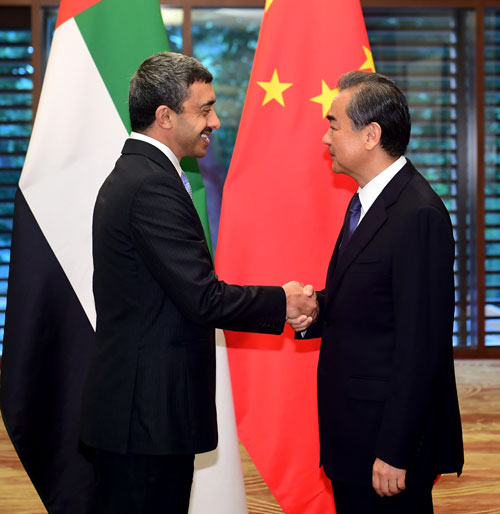 王毅表示,近年来,中阿关系快速发展,给双方带来重要利益。中方高度重视发展对阿关系,把阿联酋作为中东外交的优先方向,愿与阿方密切沟通,以近期高访为契机,推动中阿战略伙伴关系迈上新的台阶。中方愿把“一带一路”倡议同阿联酋“重振丝绸之路”设想结合起来,扎实推进两国标志性项目,发掘新的合作潜力,拓展新的合作领域,积极探讨开展三方合作,将中阿合作打造成中东地区乃至全球样板。中方愿继续深化同阿方在反恐和执法安全领域合作。