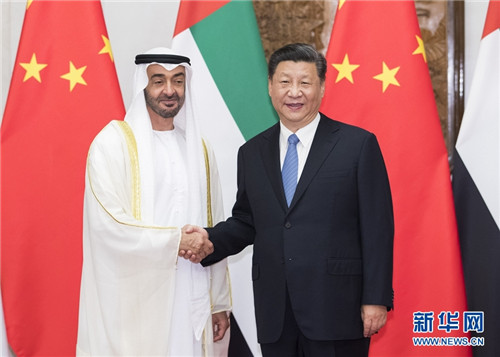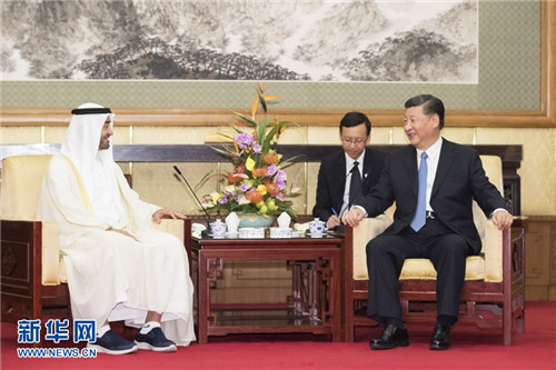 2019年7月22日晚,国家主席习近平在钓鱼台国宾馆再次会见来华进行国事访问的阿联酋阿布扎比王储穆罕默德。两国领导人在轻松友好的氛围中就中阿关系和共同关心的国际和地区问题继续深入交换意见。