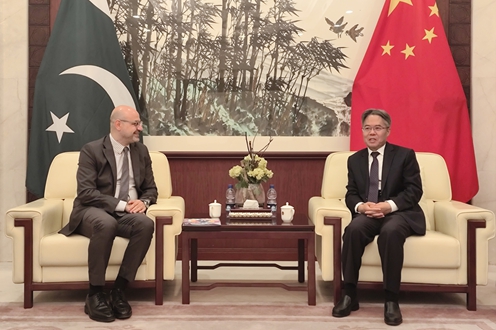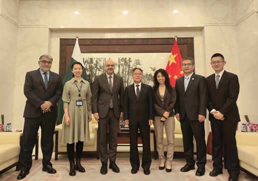 2023年11月15日,驻巴基斯坦大使姜再冬会见联合国开发计划署(UNDP)驻巴基斯坦代表塞缪尔·里兹克。