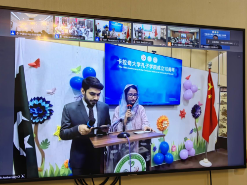 2023年12月2日,驻卡拉奇总领事杨云东应邀出席卡拉奇大学孔子学院成立十周年线上庆祝活动。卡拉奇大学校长伊拉奇、四川师范大学副校长张海东及孔子学院双方院长等出席。