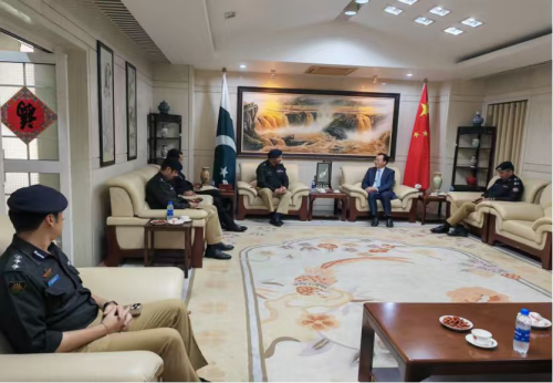 2025年9月23日,驻卡拉奇总领事杨云东会见卡拉奇市警察局长贾韦德、信德省警察厅主管安全行动的副厅长马克苏德及卡拉奇市南区警察局长阿萨德等警方有关负责人。双方就信德省特别是卡拉奇市安全形势,中国人员、项目和机构安保等进行深入交流。