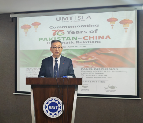 2026年4月15日,驻拉合尔总领事孙彦出席管理技术大学中巴建交75周年纪念活动,与校长穆拉德就加强教育合作与青年交流交换意见。