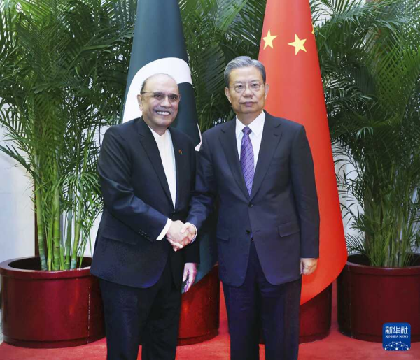 在会见扎尔达里时,赵乐际表示,习近平主席高度重视总统先生这次访问,将同你举行会谈,为中巴关系发展作出新的战略指引。中方愿同巴方一道努力,赓续中巴传统友谊,落实两国领导人重要共识,加快构建新时代更加紧密的中巴命运共同体。立法机构之间交流合作是中巴关系的重要组成部分。中国全国人大愿同巴议会增进两国立法机构高层、专门委员会、友好小组、人大代表和议员间的交流合作,为中巴合作提供有力法律保障。