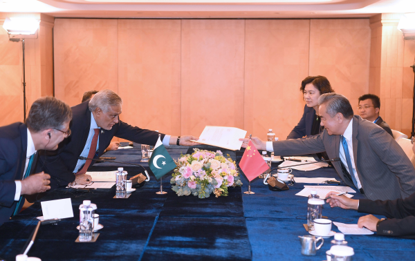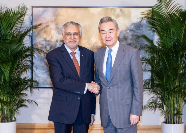 2025年5月30日晚,中共中央政治局委员、外交部长王毅在香港会见出席国际调解院公约签署仪式的巴基斯坦副总理兼外长达尔。