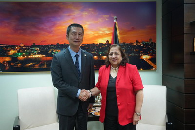 2019年10月10日,驻巴勒斯坦办事处主任郭伟会见巴勒斯坦卫生部长奇莱。