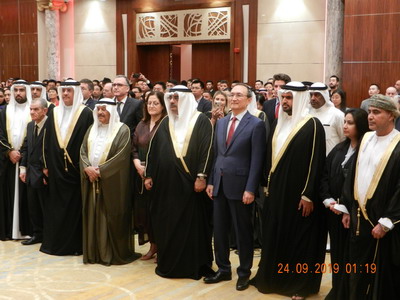 2019年9月23日晚,驻巴林使馆隆重举行庆祝中华人民共和国成立70周年招待会。巴首相代表、首相经济顾问萨勒曼亲王(首相之子)、篮球协会主席伊萨亲王(首相之孙)、协商会议主席阿里、王宫特使萨米拉、助理外交大臣杜塞里、外交部次大臣拉娜等巴重要王室成员和政府高级官员、商学界精英和各界友好人士、各国驻巴使节、旅巴华侨华人、中资企业员工和孔子学院师生代表等400多人出席。