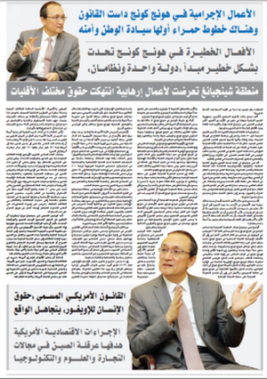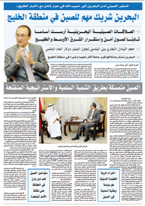 2020年1月12日,巴林发行量最大、影响力最大的阿文媒体《海湾消息报》在重要版面以两整版篇幅刊登驻巴林大使安瓦尔就中巴关系和涉疆问题等接受该报专访。安大使在专访中全面介绍中巴友好关系发展历程和各领域务实合作成果,重点就涉疆问题等向巴社会各界和公众澄清事实、讲明真相、增信释疑。报道以“新疆发生的恐怖活动侵害各族群众权益”、“美国所称维吾尔族人权受到侵害违背事实”、“尊重信仰自由是中国的法律”等为副标题,有针对性地就美西方媒体在涉疆问题上的歪曲抹黑阐释中方原则立场。专访全文如下: