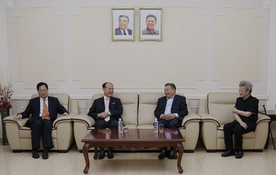 演出开始前,李进军大使、谢元副会长与朴京日委员长等简短会见。