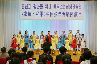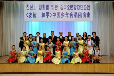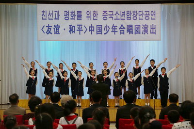 由北京十余所学校学生组成的中国少年合唱团精心准备、倾情演唱了《阿里郎》、《半月歌》和《茉莉花》、《春天在哪里》、《唱脸谱》等中朝经典曲目,歌声清澈悠扬、感情丰富细腻,令现场观众深受感动,掌声不断。