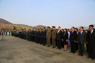 驻朝鲜大使李进军率使馆主要外交官,朝鲜城市经营省副相崔成哲同外务省、人民武力省、国家设计指导局等有关部门和平壤市各界代表,在朝志愿军烈士纪念设施保护管理工作组,中国青年干部赴朝祭扫交流代表团,江苏昆山志愿军老战士烈属祭扫代表团,上甘岭·江东志愿军烈士陵园扫墓代表团,志愿军参战68周年纪念代表团,旅朝华侨、在朝中资机构、媒体和留学生代表等一同参加。