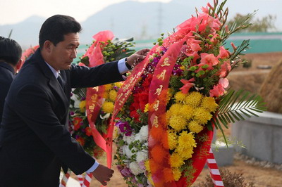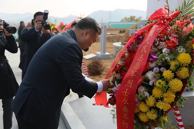 竣工仪式结束后,全体参加人员步入墓区,瞻仰墓碑,向烈士墓献花祭酒。来自上甘岭·江东志愿军烈士陵园扫墓代表团的烈士后代一家,时隔68年终于找到父亲的安息之地,在墓前为父亲和他的战友们祭上从家乡带来的苹果、点心和酒,以家乡的方式祭祀“自己一岁时就离开家奔赴朝鲜战场的父亲”,哽咽地和父亲“话家常”,眼睛里泛着泪花,悲伤之余流露出找到父亲的欢喜。几位志愿军老战士和烈属还专门准备了8朵红玫瑰,插在安葬有8位女烈士的坟墓上,用布满老茧的手向“志愿军妈妈”敬上神圣的军礼,以特殊的方式表达他们对朝鲜战场上巾帼英雄们的崇敬和缅怀之情。