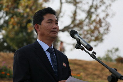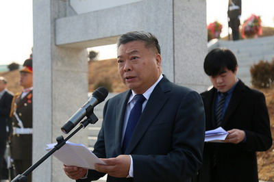 李进军大使简要回顾了68年前中国人民志愿军将士们与朝鲜军民并肩浴血奋战的历史,指出志愿军烈士们用青春的热血浇灌了金达莱盛开的朝鲜大地,用宝贵的生命缔造了中朝人民鲜血凝成的战斗友谊,强调中朝两国党、政府和人民永远不会忘记,烈士们的忠骨将与青山同在,英魂将与日月同辉。