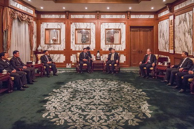 2018年11月1日,驻朝鲜大使李进军为朝鲜城市经营省副相崔成哲举行友好活动,朝城市经营省金哲万局长、金世燕局长等在座。