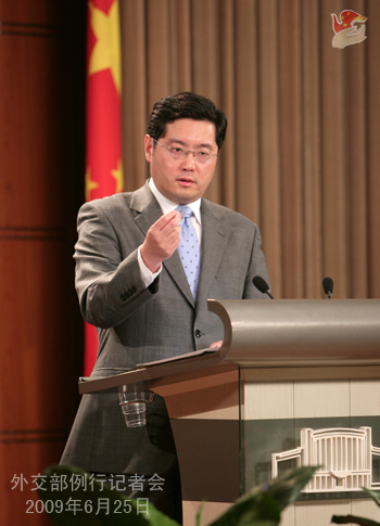 2009年6月25日,外交部发言人秦刚举行例行记者会。答问如下: