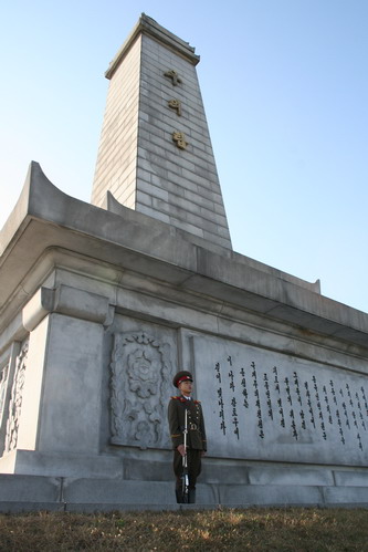 2009年4月4日清明节。刘晓明大使率中国驻朝使馆外交官和在朝中资机构人员向中国人民志愿军烈士纪念碑——友谊塔敬献花圈,深切缅怀入朝参战的中国人民志愿军烈士。