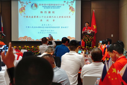 出席人员纷纷踊跃发言,表示二十大是本世纪最重要的政治事件之一;祖国日益昌盛让海外侨胞扬眉吐气,意气风发;只有共产党才能带领中国更好地发展;只有中国发展得好,世界才能发展得更好;只有继续团结在以习近平总书记为核心的党中央周围,中国这艘巨轮才能行稳致远。大家表示,将从自身做起,努力增强中华文明和中华文化的传播力影响力,推进菲方同中方、同世界各国人民共同推动构建人类命运共同体。