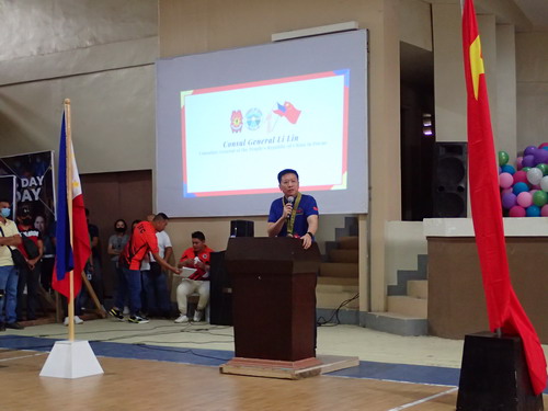 黎林总领事表示,这已是我第6次访问迪戈斯市,体现了总领馆和迪戈斯市政府的密切关系,更体现了中菲好邻居、好亲戚、好伙伴的“三好关系”。黎林总领事向大家宣介了中国共产党第二十次全国代表大会情况及习近平主席近期会见菲律宾总统马科斯期间双方达成的重要共识,特别是习近平主席关于中方愿扩大进口更多菲律宾优质农副产品的表态,强调总领馆愿积极推动包括迪戈斯市在内的棉兰老地区与中方的友好合作,加强农业、基建、能源、人文等领域交流合作。黎林总领事强调,合作与发展离不开安全稳定的环境。总领馆此次捐赠一台中国一汽制造的警车,能够在搭载十余人的情况下越野作业,希望能够助力迪戈斯市警方更好地维持治安,也希望迪戈斯市今后在购置公用物资时多考虑物美价廉的中国制造。