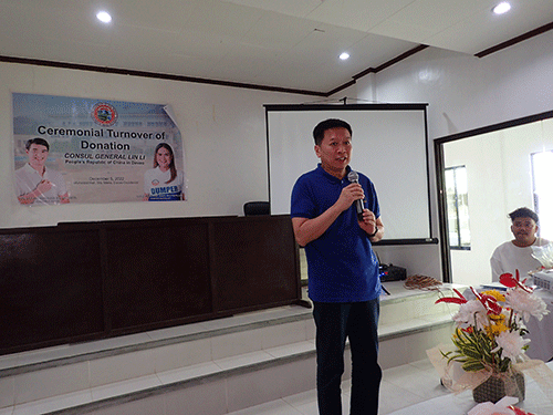 黎林总领事表示,驻菲使领馆始终重视与棉兰老地区各领域友好合作,包括携手抗疫、应急救灾。此次西达沃省因持续暴雨导致洪灾后,驻菲律宾使馆迅速反应,向灾区灾民提供力所能及的帮助,再次体现了中菲间好邻居、好亲戚、好伙伴的“三好关系”。黎林总领事还向大家宣介了中国共产党第二十次全国代表大会情况及习近平主席近期会见菲律宾总统马科斯期间双方达成的重要共识,强调除了救灾赈灾以外,中方愿与菲方共同努力,推动落实领导人共识,拓展同圣玛丽亚市的各方面合作。
