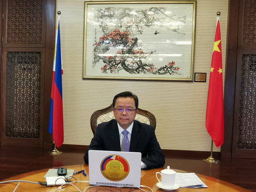 黄大使表示,惟以心相交,方成其久远。中国自古就是公认的礼义之邦,其对外交往在任何时候都是讲礼数、有温度的。中国人爱好和平、崇尚和谐,以诚待人,以信为本。中国外交植根于中华优秀的传统文化,强调重情尚义,强调“亲、诚、惠、容”,主张世界各国的开放性合作和包容性发展。中菲既是血缘相亲的亲戚,也是同舟共济的邻居和患难与共的伙伴。两国都曾遭到西方殖民者侵略,有着共同的历史遭遇,同时也有着相濡以沫、同仇敌忾的珍贵历史记忆。菲律宾人民反抗帝国主义侵略和统治,争取民族独立的斗争,曾得到中国伟大民主主义革命家孙中山的支持。在第二次世界大战反抗日本帝国主义的战斗中,中菲人民互相鼓舞支持,为世界反法西斯战争胜利作出重要贡献。