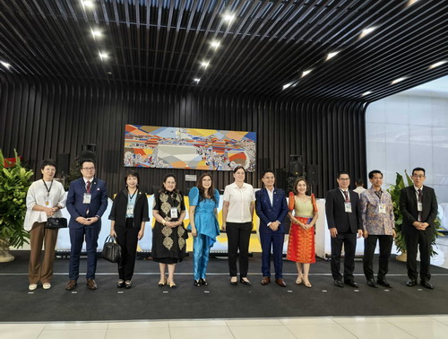 2025年9月18日,驻达沃总领事赵秀珍应邀出席第27届达沃农业贸易博览会(DATE)暨第8届投资大会(ICON)开幕式,与菲律宾副总统萨拉·杜特尔特,达沃市政府及外国驻菲外交使团领团代表共同为展会开幕剪彩。