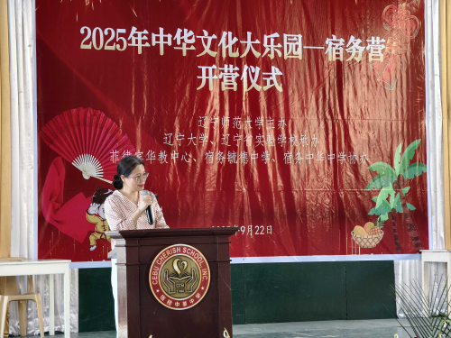 张瑱总领事致辞向辽宁省老师们表示感谢,表示“中华文化大乐园”活动是中菲人文交流的生动实践,希望宿务华校的师生们从中感知中国文化的魅力,祝愿每位参与者都收获知识、快乐、友谊与成长。