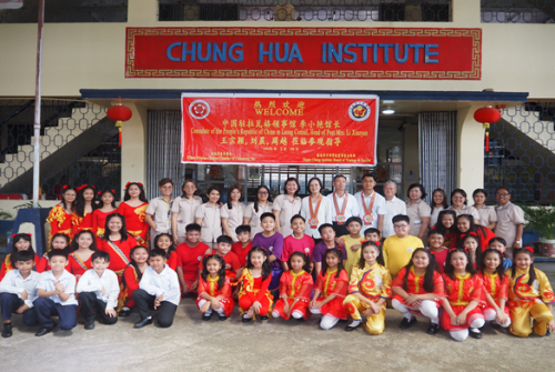 李馆长领事还出席了依拉岸市政府举行的升旗仪式并发表演讲,实地走访当地华校,调研知名侨商企业,慰问当地华侨华人和志愿者教师。