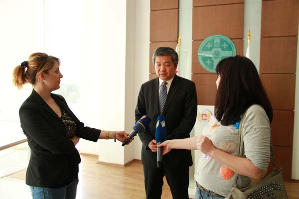 会见后,岳大使接受了当地媒体的采访。