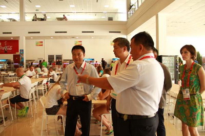 岳大使在华凌集团总裁米恩华的陪同下,考察了奥运村运动员公寓、餐厅、媒体中心、训练场馆以及酒店等设施。
