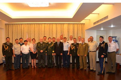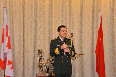 刘文斗武官发表致辞,介绍了近年来中国军队建设取得的成就,表示中国坚定不移地奉行防御性国防政策,坚持走和平发展道路,中国人民解放军是维护世界和平、稳定和发展的重要力量,中国军队愿继续与各国军队加强交流合作,共同致力于维护世界和平与稳定。刘武官还介绍了中国即将举行的世界反法西斯战争暨中国人民抗日战争胜利70周年系列纪念活动的情况,强调汲取历史教训、维护战后世界秩序的重大意义。